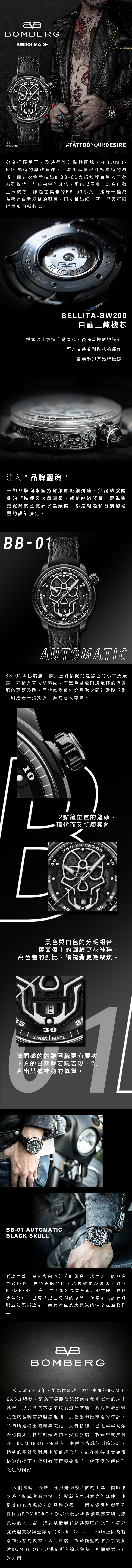 外觀:黑色PVD不銹鋼錶殼,錶徑43 mm,火焰骷髏雕花造型錶殼,藍寶石水晶玻璃鏡面,防水 50米