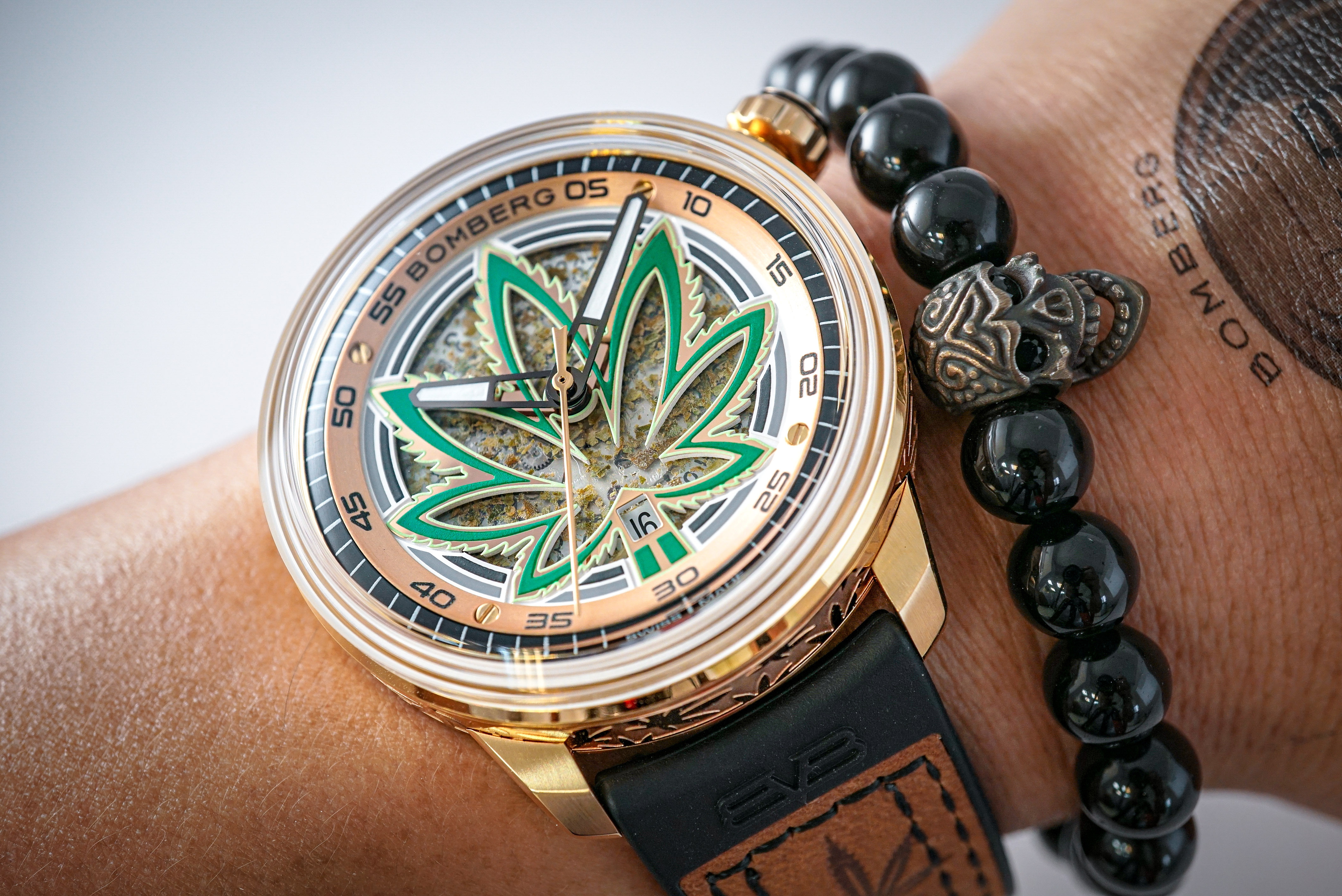 這幾年金色錶款有逐漸興起的趨勢,過往讓人感覺老派的金錶,通過全新設計概念,轉而成為時尚風潮的象徵。全新BB-01 CBD GOLDEN採用金色PVD不鏽鋼錶殼、金色的錶內圈,凸顯這次“GOLDEN”主題。延續系列主題的整體感,錶殼經過立體雷射雕花處理,貫徹一致的設計感。透明面盤上鮮明綠色大麻葉圖案已然具有辨識度,BOMBERG炸彈錶還使用夜光塗料描邊,當光線昏暗時面盤則會展現不同的風情。此外,面盤下層零散分佈的大麻葉萃取物則無疑是錶款最大特色,而大麻葉萃取物採隨機佈局,因此每款BB-01 CBD GOLDEN的面盤都有微妙的不同,每一只都是獨一無二的存在。