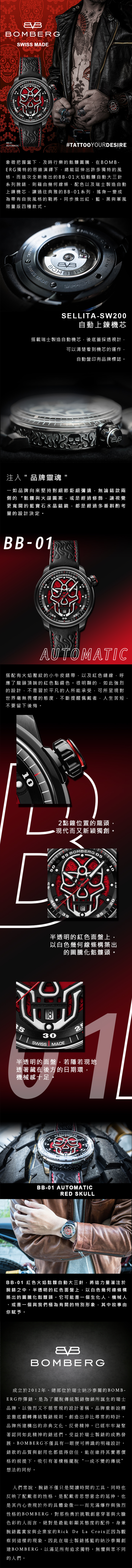 BB-01 自動機械系列 紅色火焰骷髏自動大三針