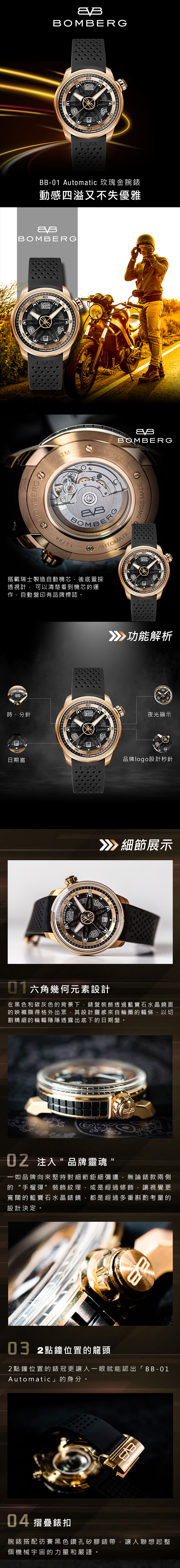 BB-01 自動機械系列 玫瑰金色自動大三針