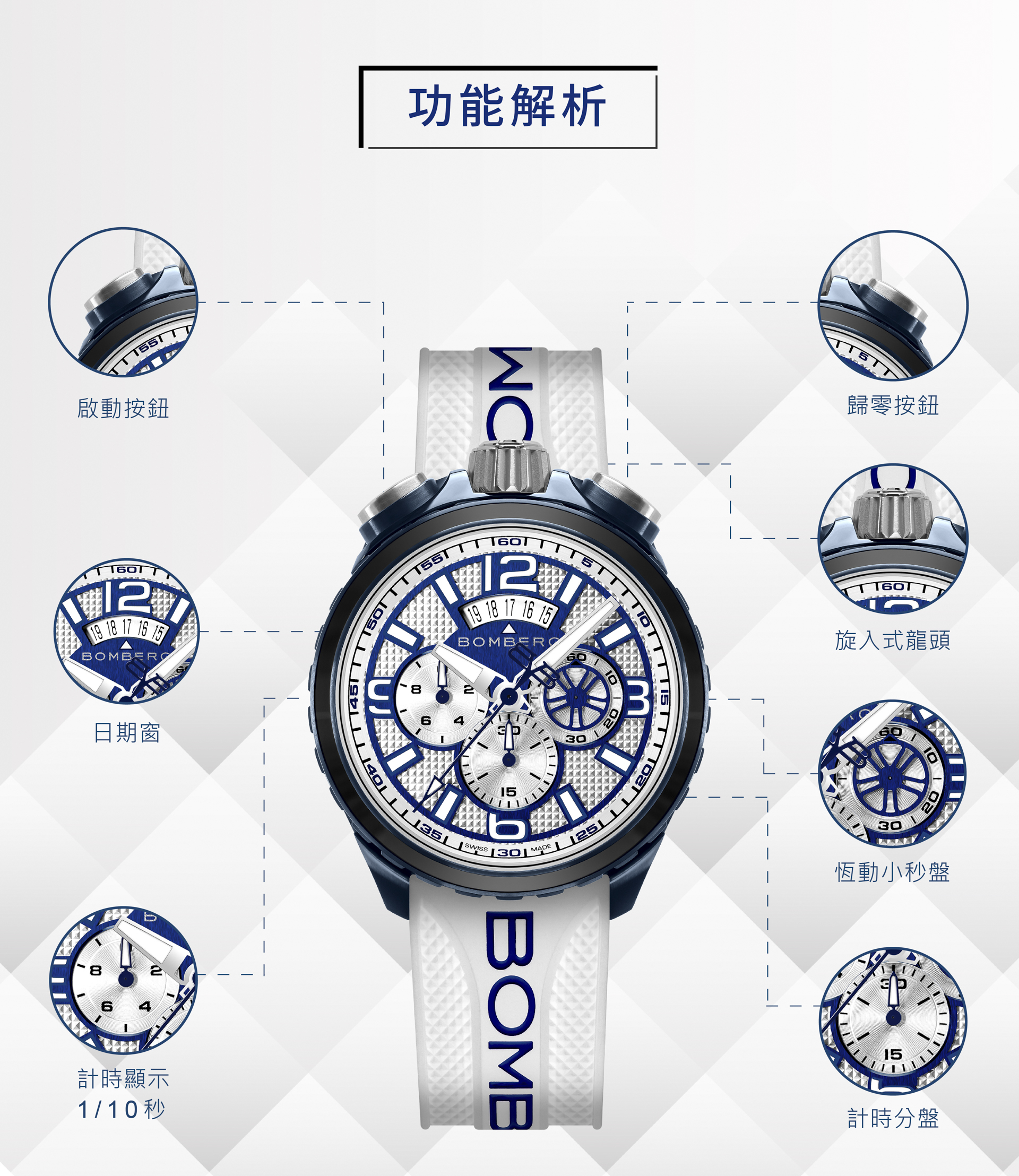 BOMBERG BOLT-68  Heritage系列 普魯士藍計時碼錶BOMBERG BOLT-68  Heritage系列 普魯士藍計時碼錶