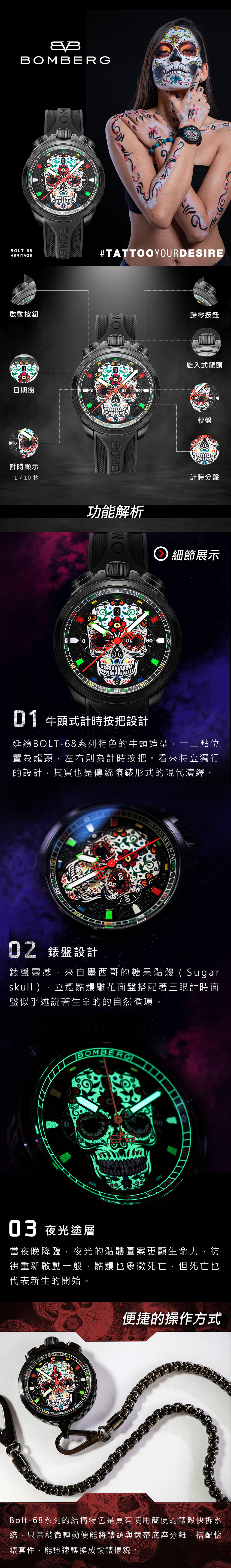 BOLT-68 Heritage 系列 糖果骷髏計時碼錶