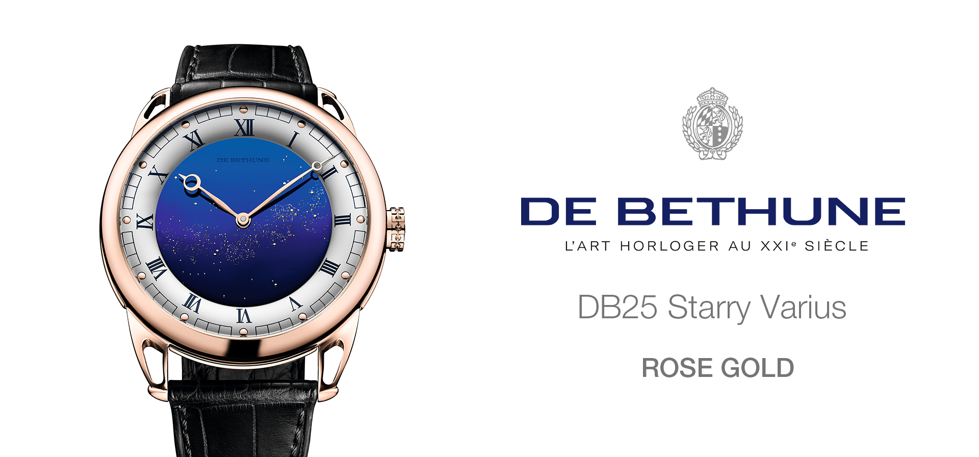 2020年:優雅的形式,高貴的材料,完美的拋光錶面。De Bethune推出別出心裁的DB25 Starry Varius 5N玫瑰金版本。以柔和、溫暖的貴金屬再次賦DB25微妙而嚴謹的優雅氣質。DB25 Starry Varius憑藉面盤上個性化的星座排列、重新規劃的錶耳與原創的42毫米錶殼,自成一格的態度但又保有傳統高級製錶的韻味,也以此奠定自身經典當代大作。