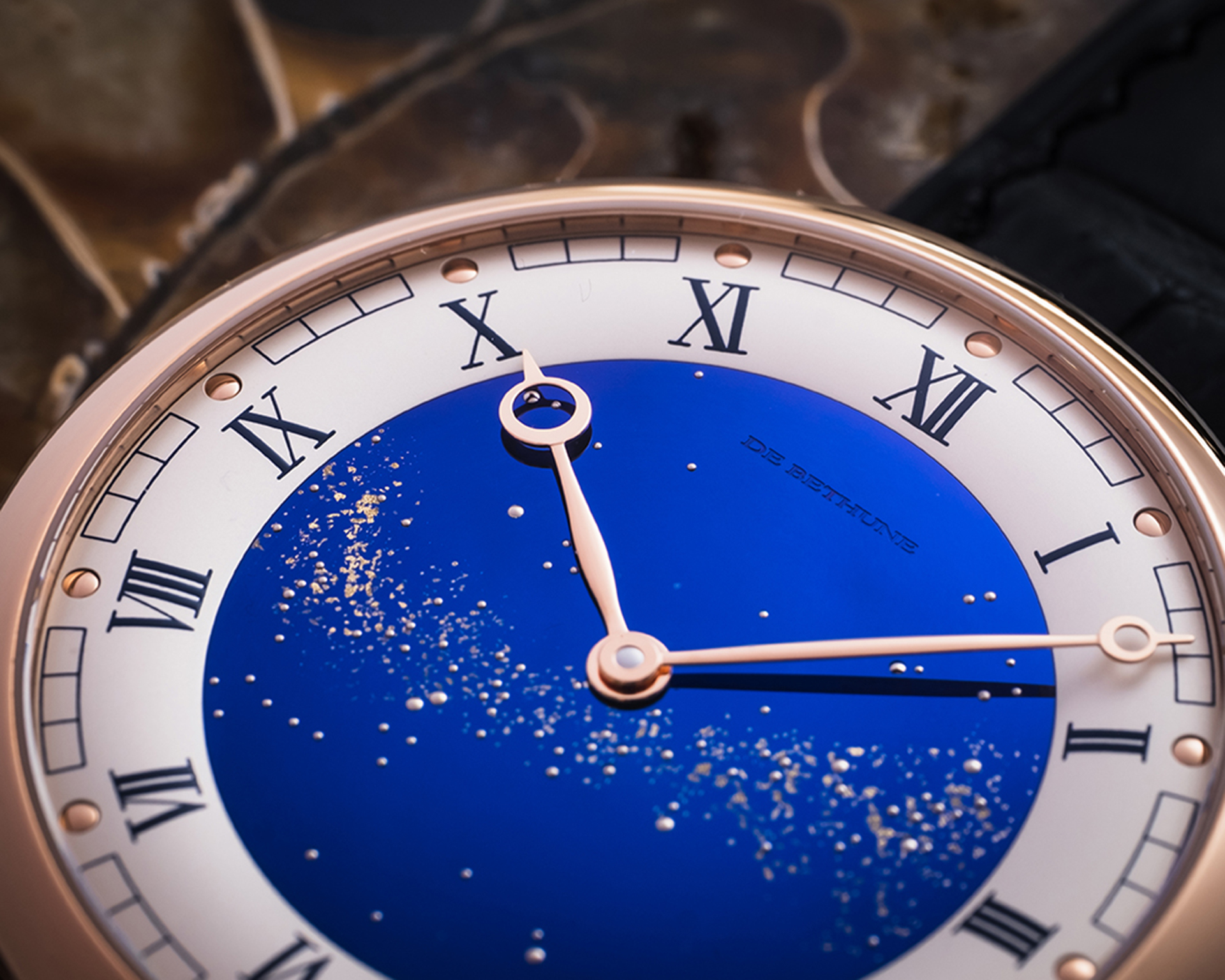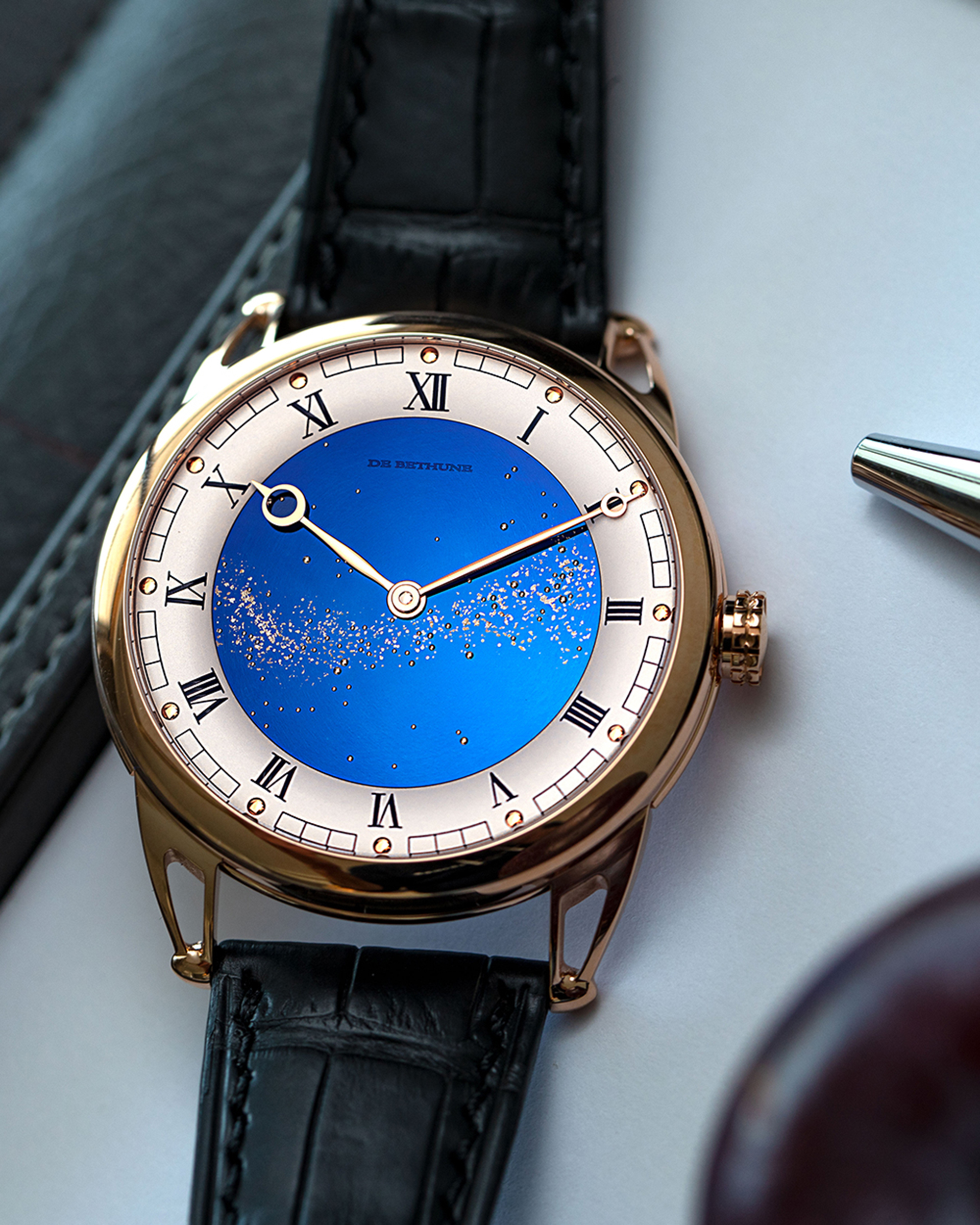 「宇宙,在超越天堂之處……當您想要得知時間,卻又沒有任何工具時。自然便會抬頭仰望。宇宙,這是製錶業中經常出現的主題。」首席製錶師兼De Bethune創辦人Denis Flageollet 如此說道,並且指出在過去的幾年中,星光熠熠的錶盤,已成為製錶歷史中不可或缺成分。