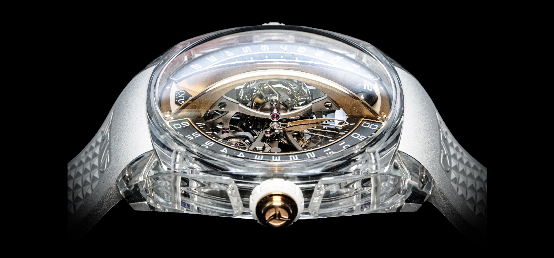 由CYRUS製錶大師Jean-François Mojon設計的Klepcys 垂直陀飛輪第一版於 2018 年發布,它展示了傑出創新的手動上鏈機芯。陀飛輪框架以90°角設置於錶盤中央縱軸上。CYRUS的技術團隊經過學術研究發現:在佩戴過程中,當陀飛輪框架處於這一角度時,它幾乎始終處於垂直狀態,從而能優化其精度性能,實現更加穩定、精確的走時狀態。 為了進一步提升機械裝置的美感,Cyrus Genève 賽瑞錶為其錶盤選擇了獨特的 3D 鏤空架構,並首次採用透明藍寶石水晶錶殼,讓手錶愛好者和收藏家能從各個角度完整地品鑒機芯奧妙,欣賞所有令人驚歎的美妙細節。