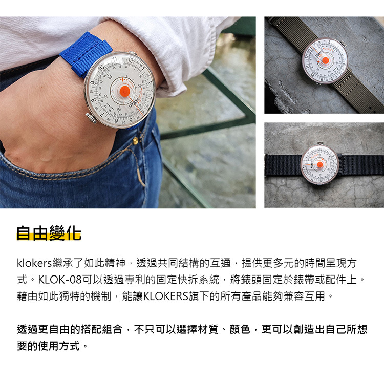 快拆鍵 (klokers鍵):在錶殼8點鐘方向有個klokers鍵,可以將手錶從快拆介面中快速解開