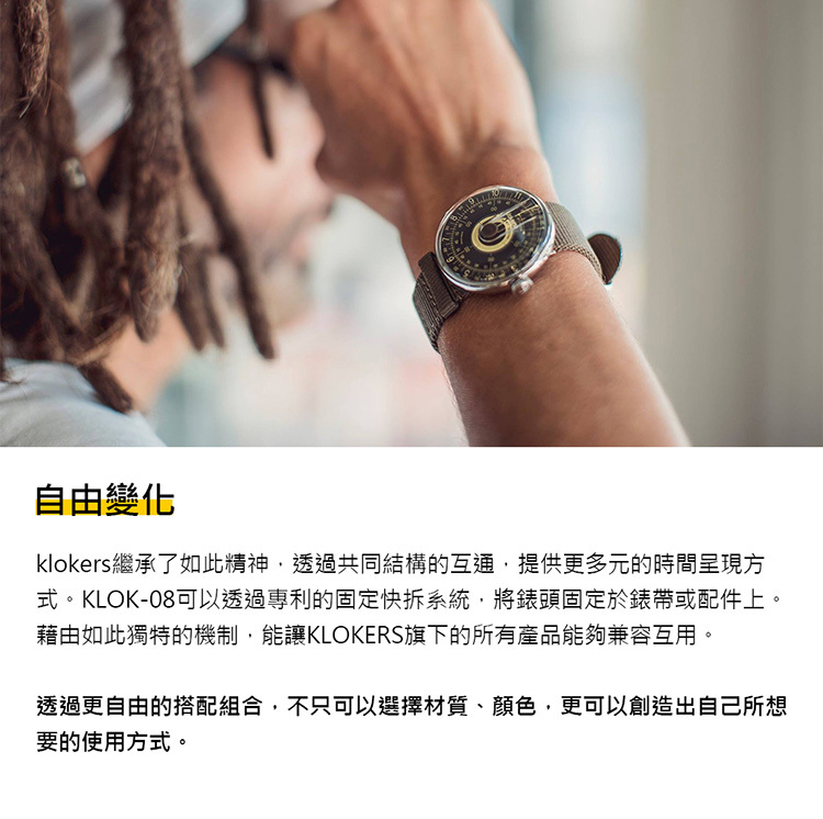 快拆鍵 (klokers鍵):在錶殼8點鐘方向有個klokers鍵,可以將手錶從快拆介面中快速解開