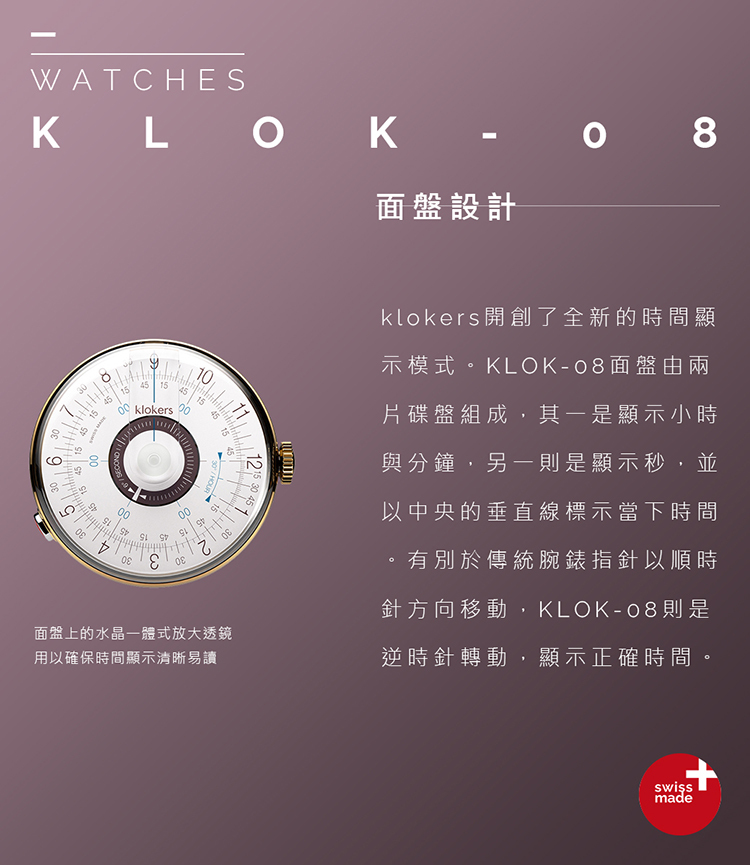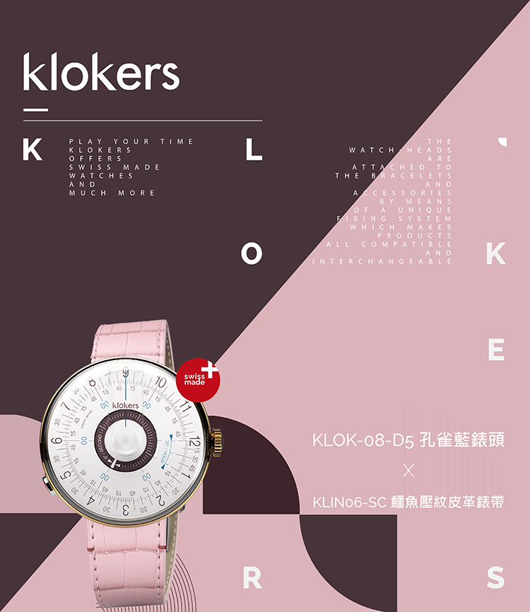 • 搭配鱷魚壓紋與316L 不鏽鋼折疊錶扣,並刻有klokers字樣