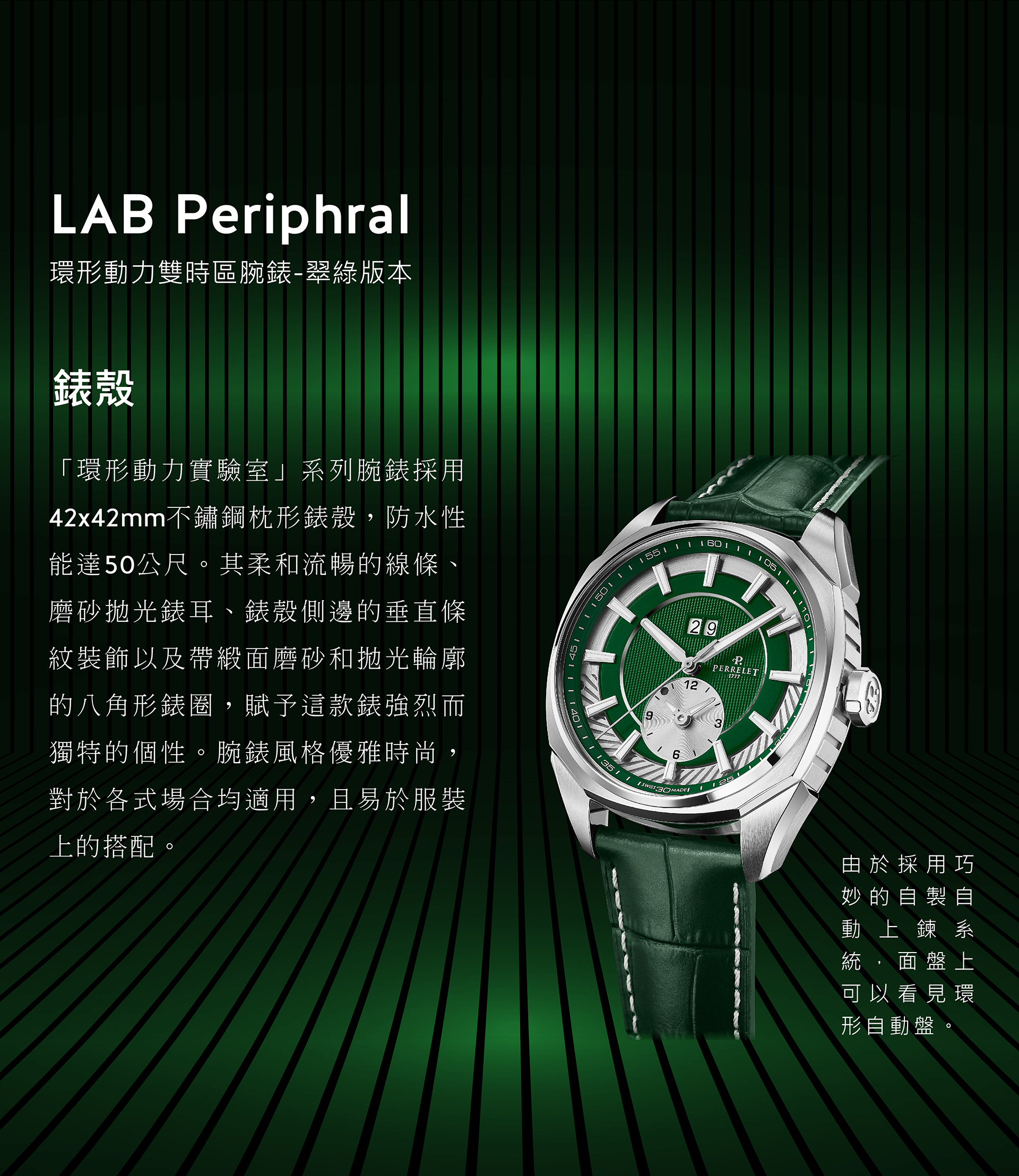 2021年,Perrelet 將自動機芯推向更高境界。「環形動力實驗室LAB Peripheral」系列推出了「環形動力雙時區腕錶」和「環形動力大三針腕錶」款式。