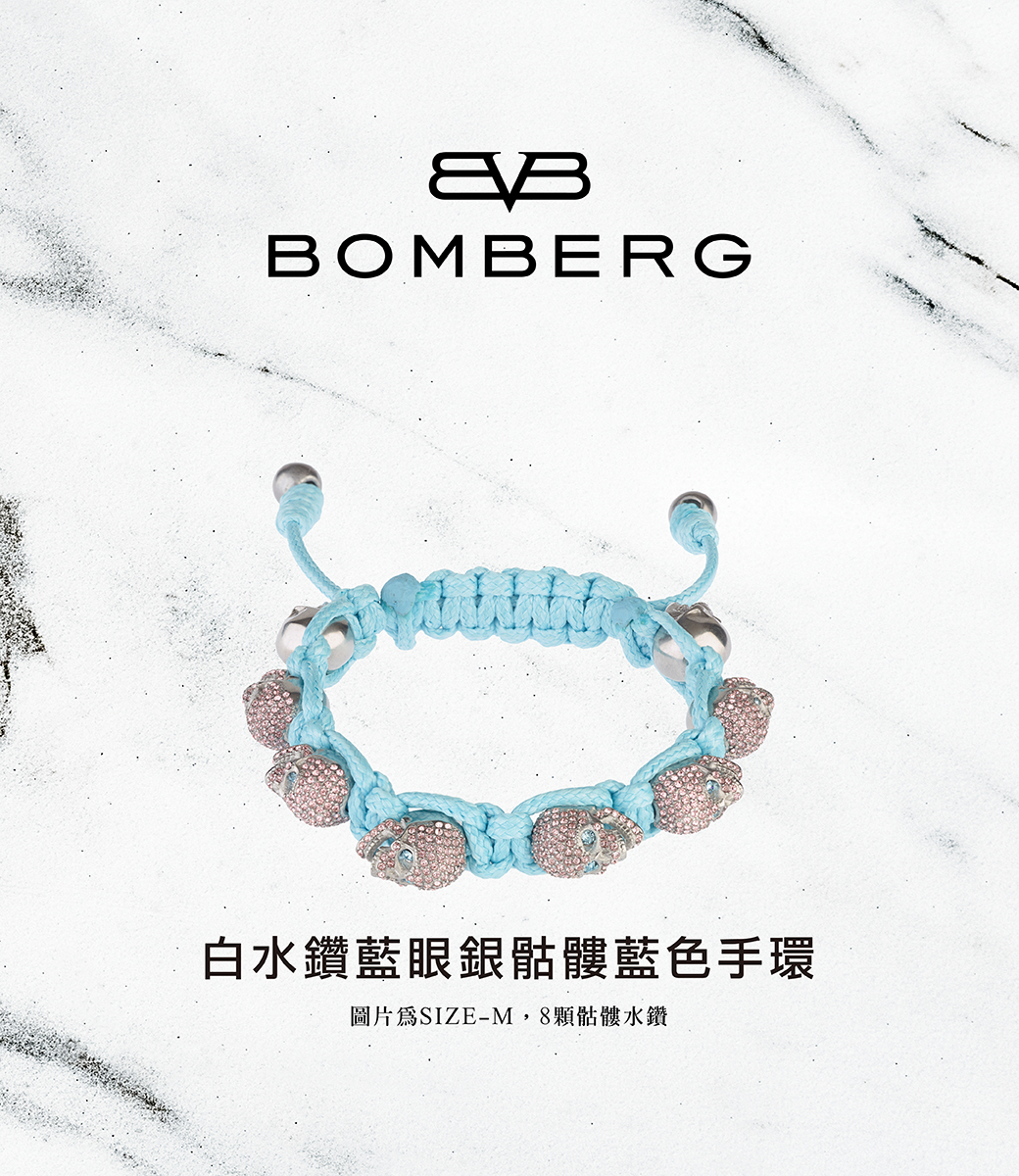 - BOMBERG|白水鑽藍眼銀骷髏粉藍色手環*1