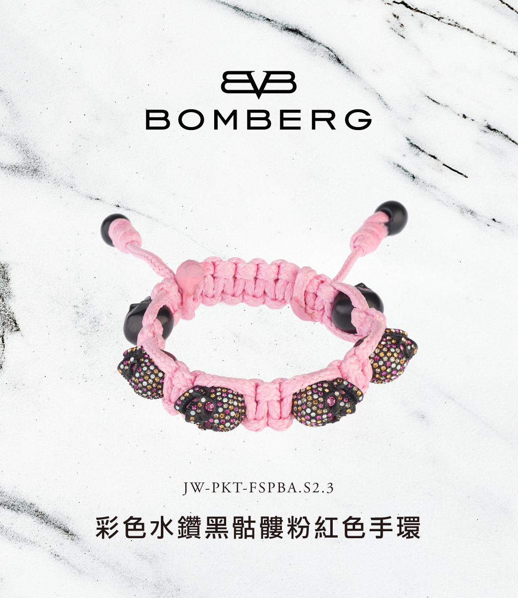 - BOMBERG|彩色水鑽黑骷髏粉紅色手環_型號:JW-PKT-FSPBA.S2.3