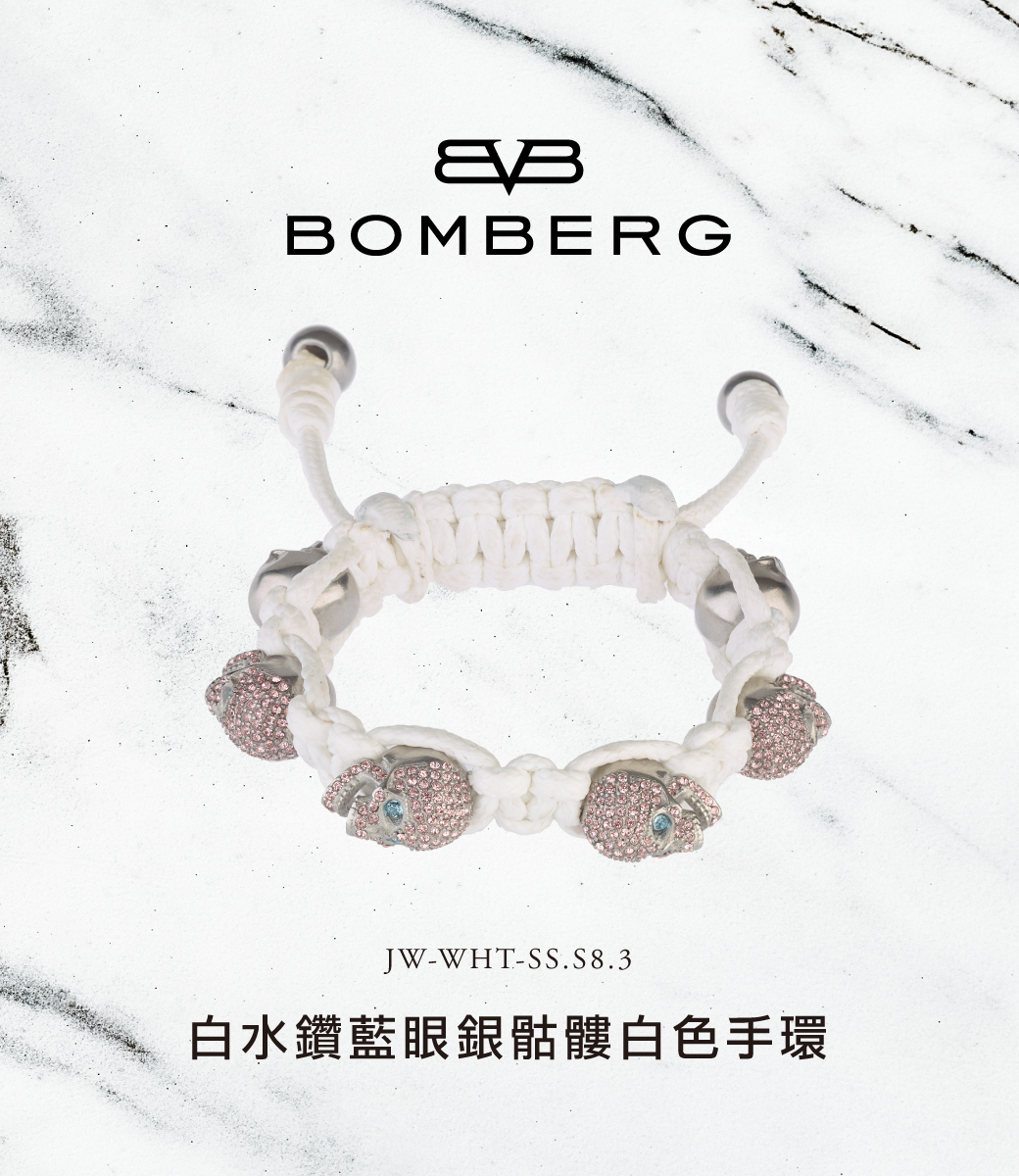 - BOMBERG|白水鑽藍眼銀骷髏白色手環_型號:JW-WHT-SS.S8.3*1