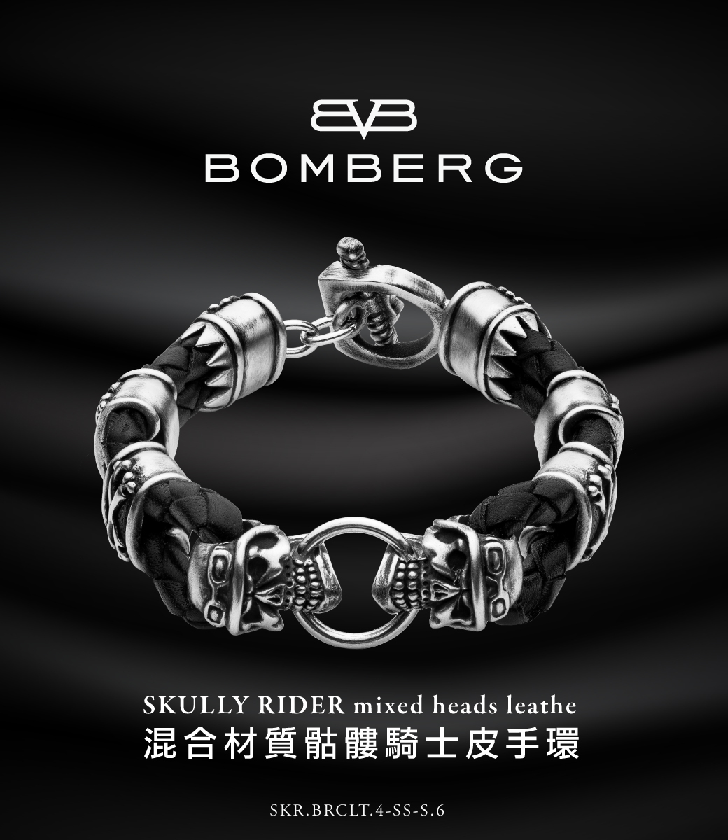 - BOMBERG|混合材質骷髏騎士皮手環_型號:SKR.BRCLT.4-SS-S.6*1