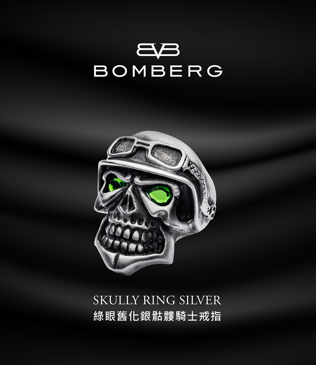 - BOMBERG|綠眼舊化銀骷髏騎士戒指*1