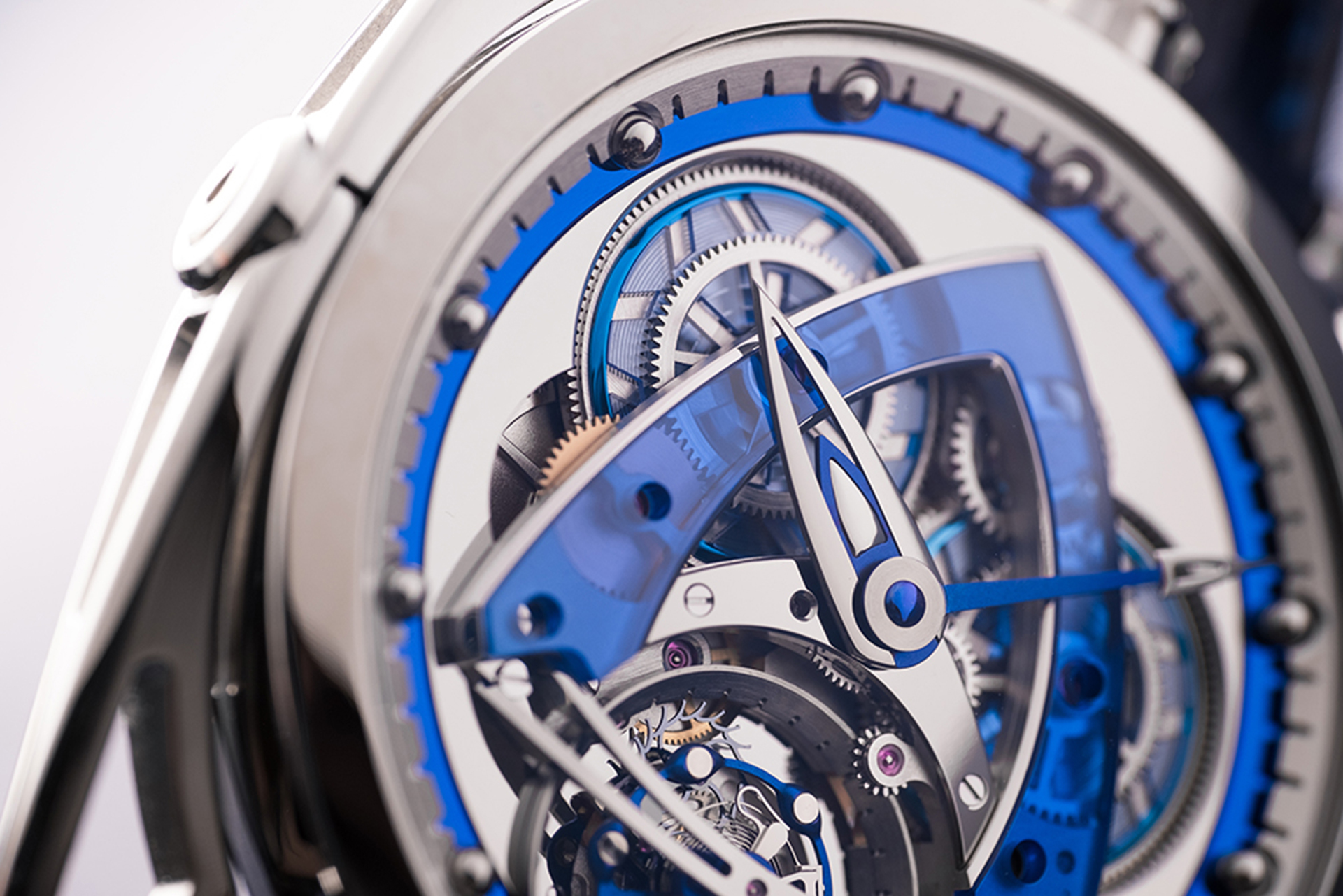 Denis Flageollet 從未遺忘不斷精進的初衷,發想出概念特殊的藍寶石水晶組件,更進一步強調機芯質感。在高精準度的雷射切割下得到完美成果,包括橋板與發條盒蓋的形狀、凸起、角度甚至是齒輪,都需達到完美結合。