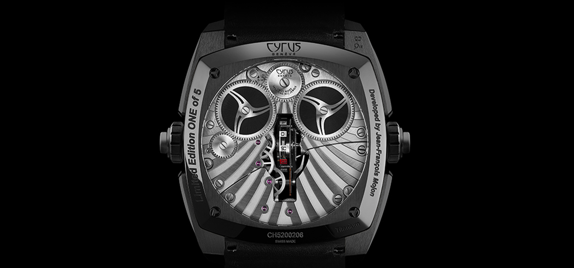 當今最具啟發性的製錶大師 Jean-François Mojon 既是 CYRUS 作品的幕後智囊,也是錶廠的技術總監。在這款新作上,他嘗試重新煥發 KLEPCYS VERTICAL TOURBILLON 的神奇魅力,對經典作品的創新驅動機制進行了重新詮釋。陀飛輪框架被置於面盤中央縱軸,並且旋轉 90° 安裝。CYRUS 的技術團隊經過刻苦研究發現:在佩戴過程中,當陀飛輪框架處於這一角度時,它幾乎始終處於垂直方位,從而實現更加穩定、精確的走時狀態。