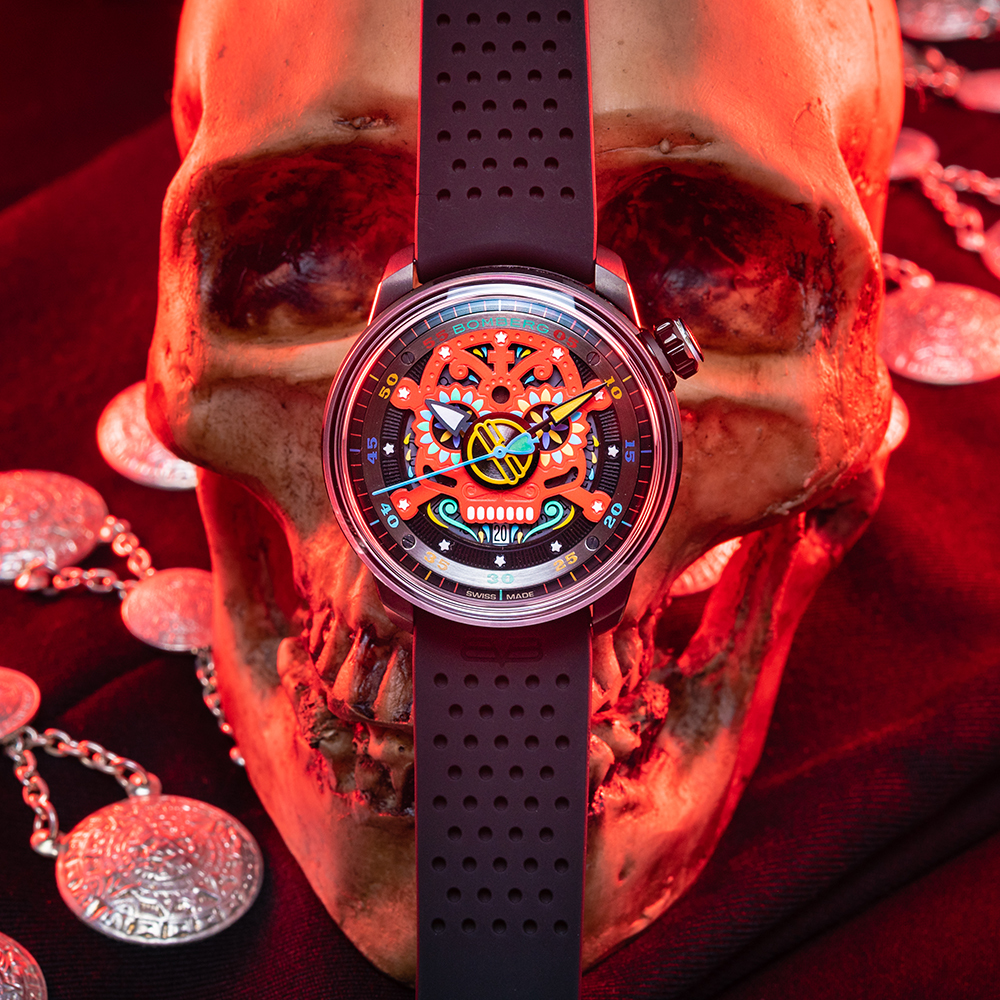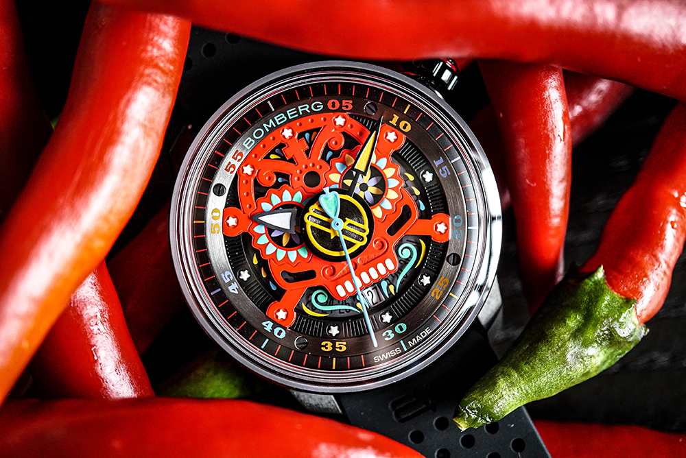 💣黑色橡膠錶帶搭配摺疊錶扣。