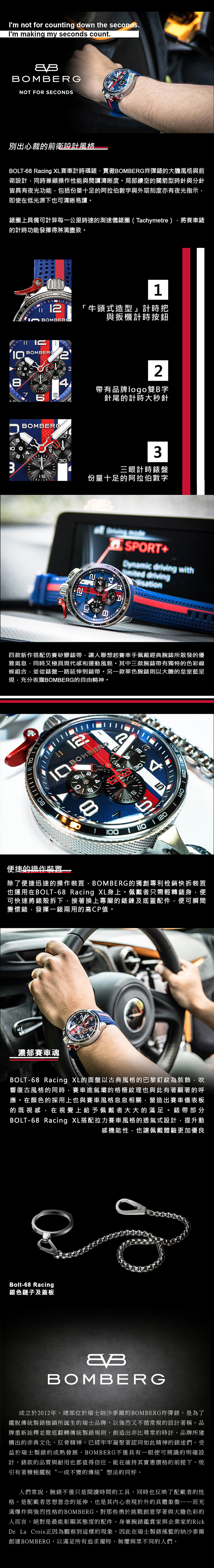 BOLT-68 系列全鋼藍面XL復古賽車計時碼錶
