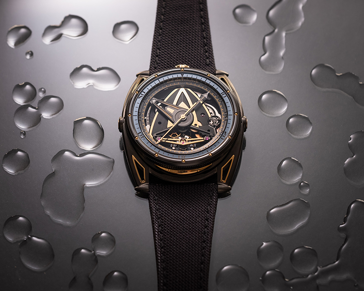 非凡的配戴舒適感歸功於鋯與不鏽鋼的材質組合、手工拋光帶來的滑順感、錶冠設置在十二點鐘,以及最重要的是專利浮動錶耳的運用。錶耳特色的子彈尖端突出搶眼,搭配拋光黃色5級鈦金屬嵌件,與錶殼側面設計概念一致。而浮動錶耳大範圍的可動性,能適合不同尺寸的手腕,帶來更好的貼合感。