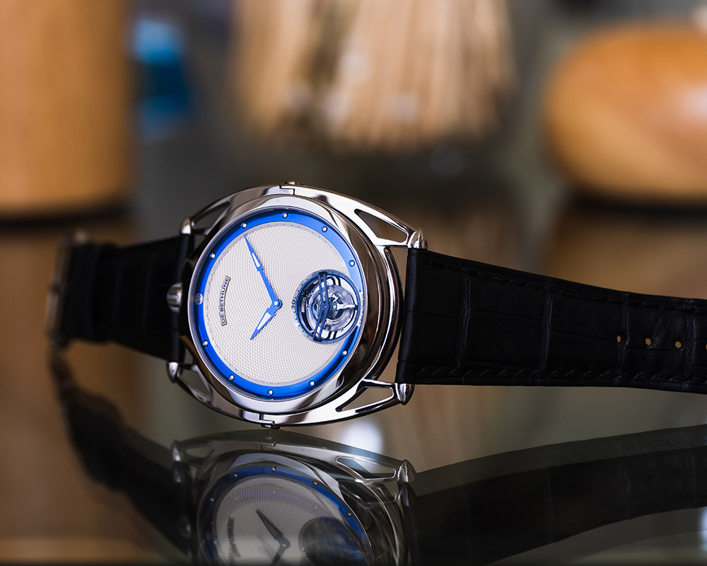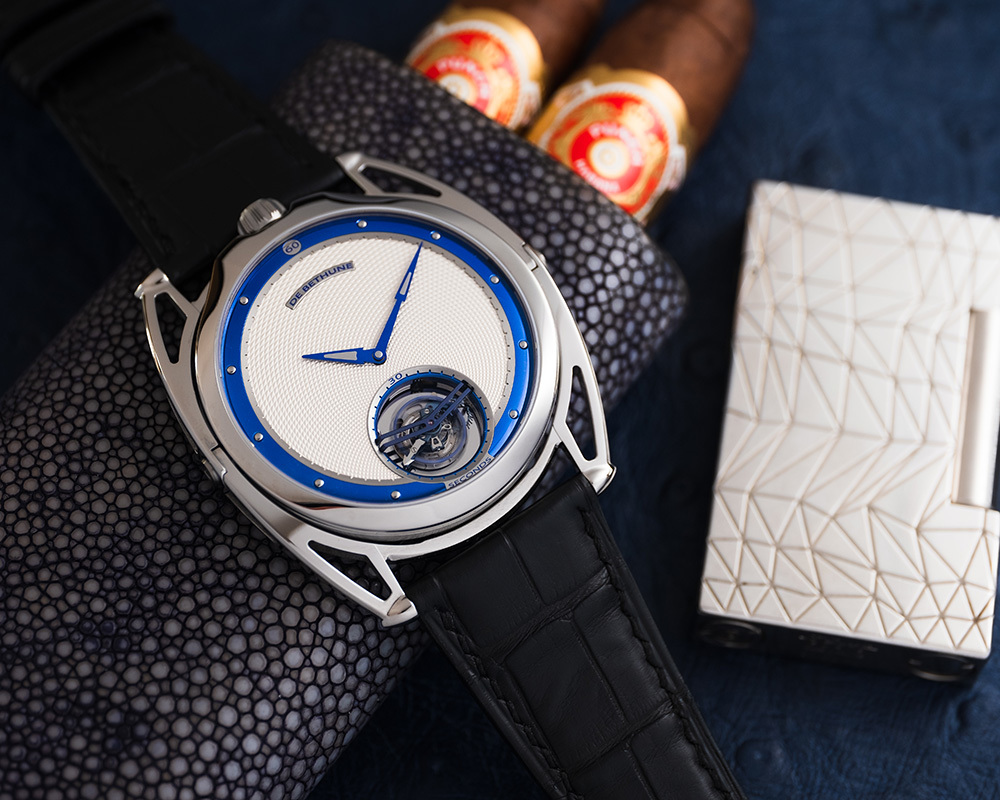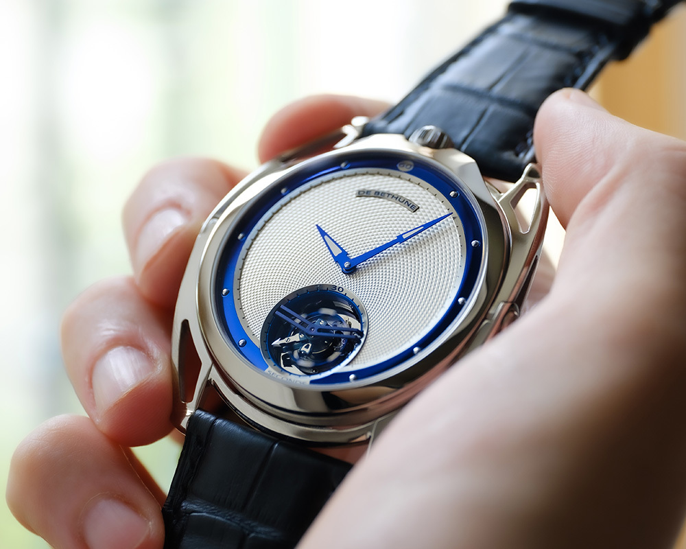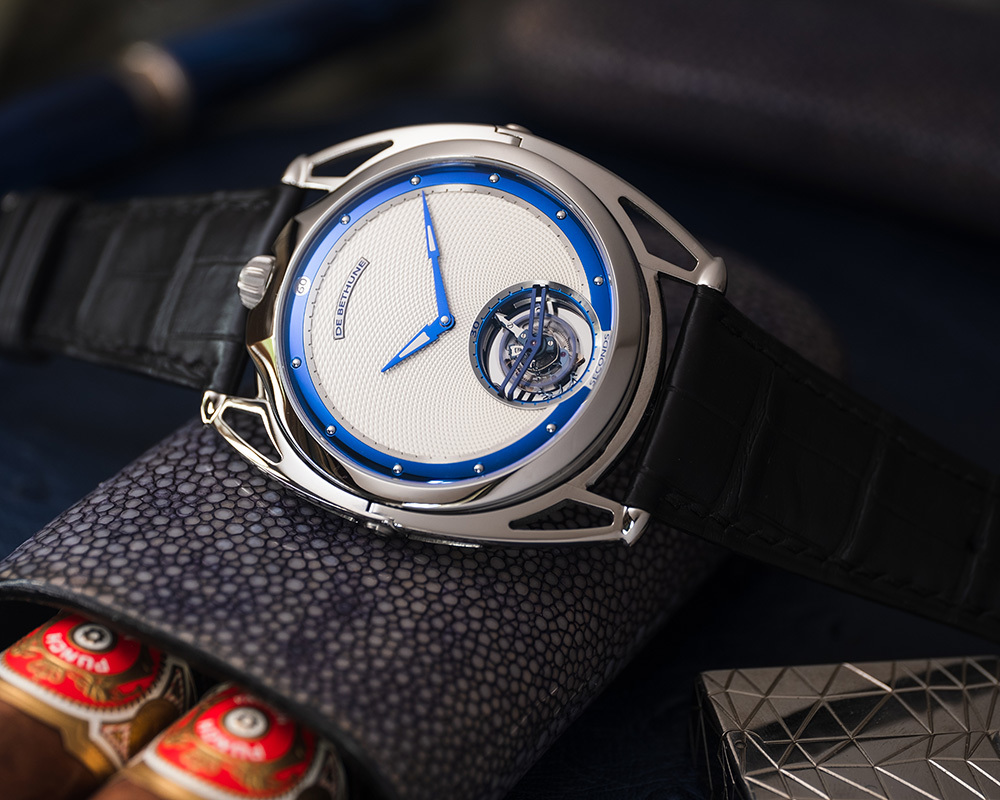 機芯De Bethune 自製手動上鏈機芯,5天動力儲存,鈦金屬擺輪、專利De Bethune 游絲系統、鈦金屬框架30秒陀飛輪