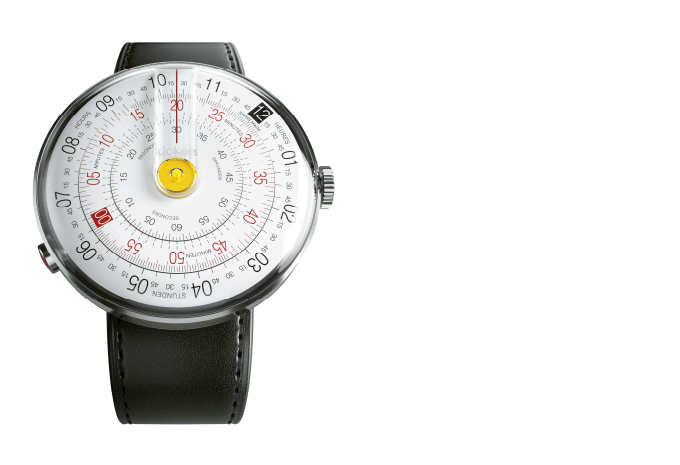 • 錶盤時間顯示:三個同心圓盤轉動,沿著錶盤頂端的垂直線指示時間。