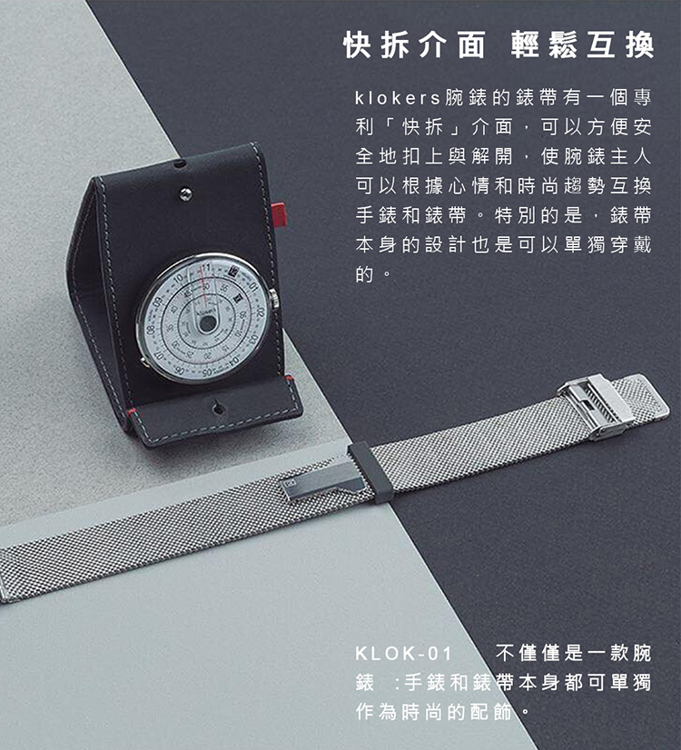 • 快拆鍵 (klokers鍵):在錶殼8點鐘方向有個klokers鍵,可以將手錶從快拆介面中快速解開