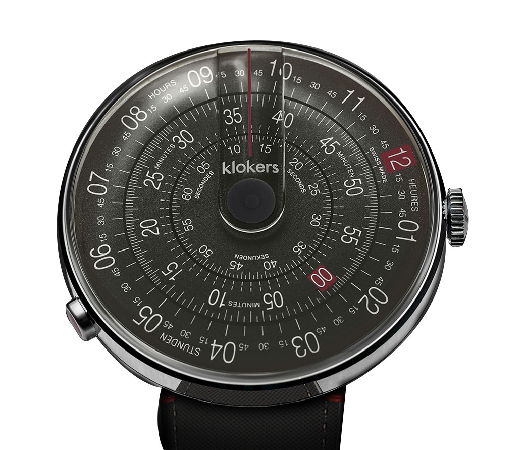 • 錶盤時間顯示:三個同心圓盤轉動,沿著錶盤頂端的垂直線指示時間。