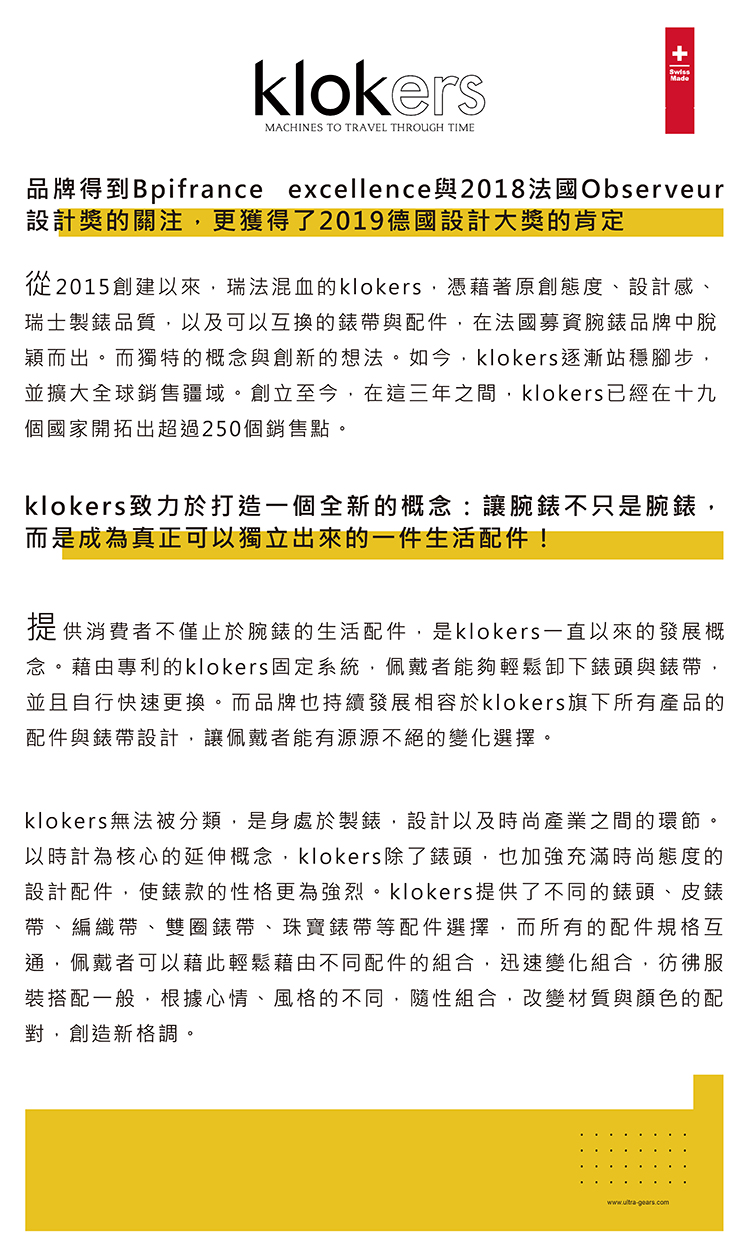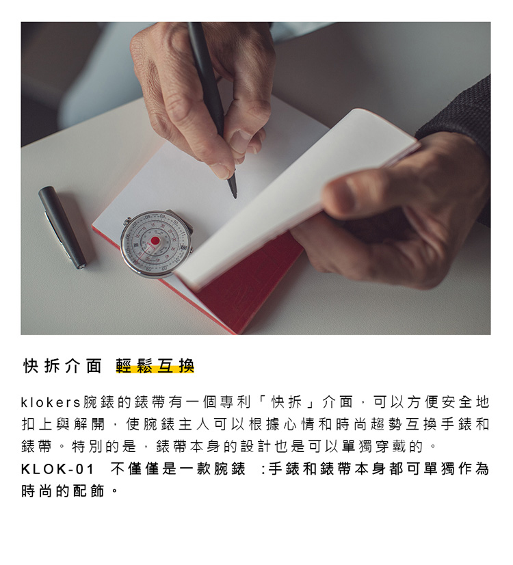 • 快拆鍵 (klokers鍵):在錶殼8點鐘方向有個klokers鍵,可以將手錶從快拆介面中快速解開
